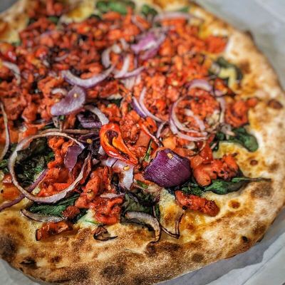 Special Base Sauce, Chicken, Red Onion, Spinach and Mozzarella Cheese.