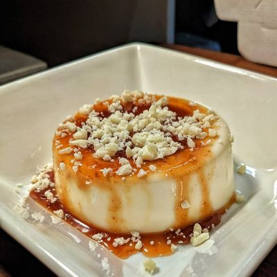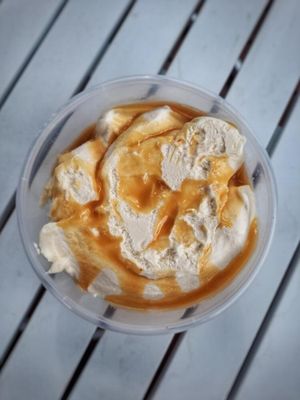 Salty caramel sauce and white chocolate topping with this classic Italian cream dessert.