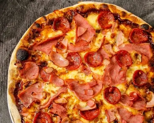 Tomato Sauce, Ham, Pepperoni, Bacon, Mozzarella Cheese.