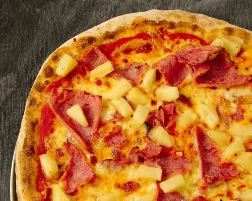 Tomato Sauce, Ham, Pineapple and Mozzarella Cheese.
