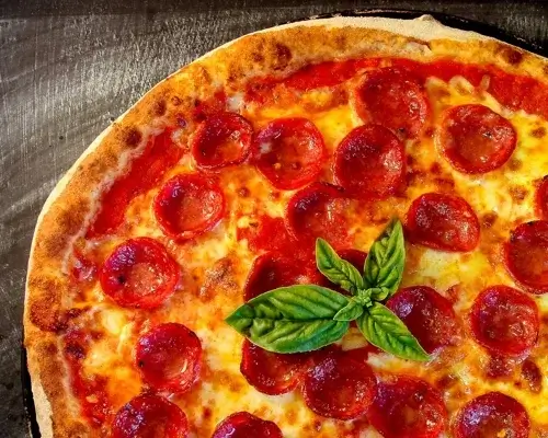Tomato Sauce, Pepperoni and Mozzarella Cheese.